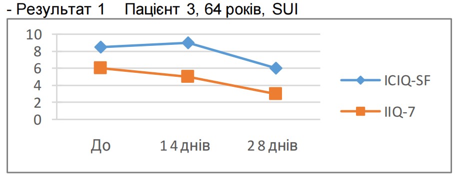 У дослідженні брали участь 46 пацієнток (62, 5 ± 13, 9 років), які проходили лікування транс- вагінальним HIFU протягом 3-річного періоду (до січня 2021 року). Для визначення ефективності використовували Коротку форму анкети Міжнародної консультації з питань нетримання сечі (ICIQ-SF).